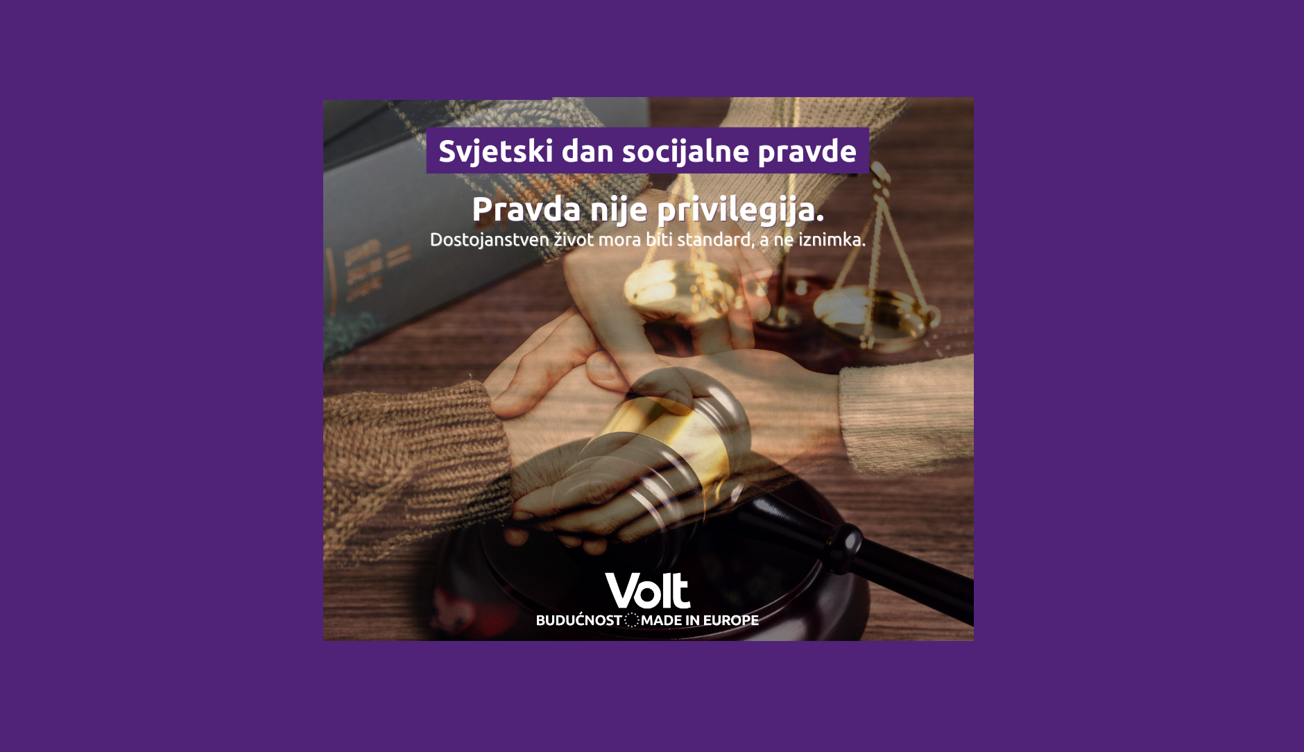Volt Hrvatska želi danas skrenuti pozornost javnosti na važnost promicanja socijalne pravde, uklanjanja problema siromaštva, isključenosti i nezaposlenosti. Te ukazati na potrebu osiguranja jednakih šansi i mogućnosti za sve.